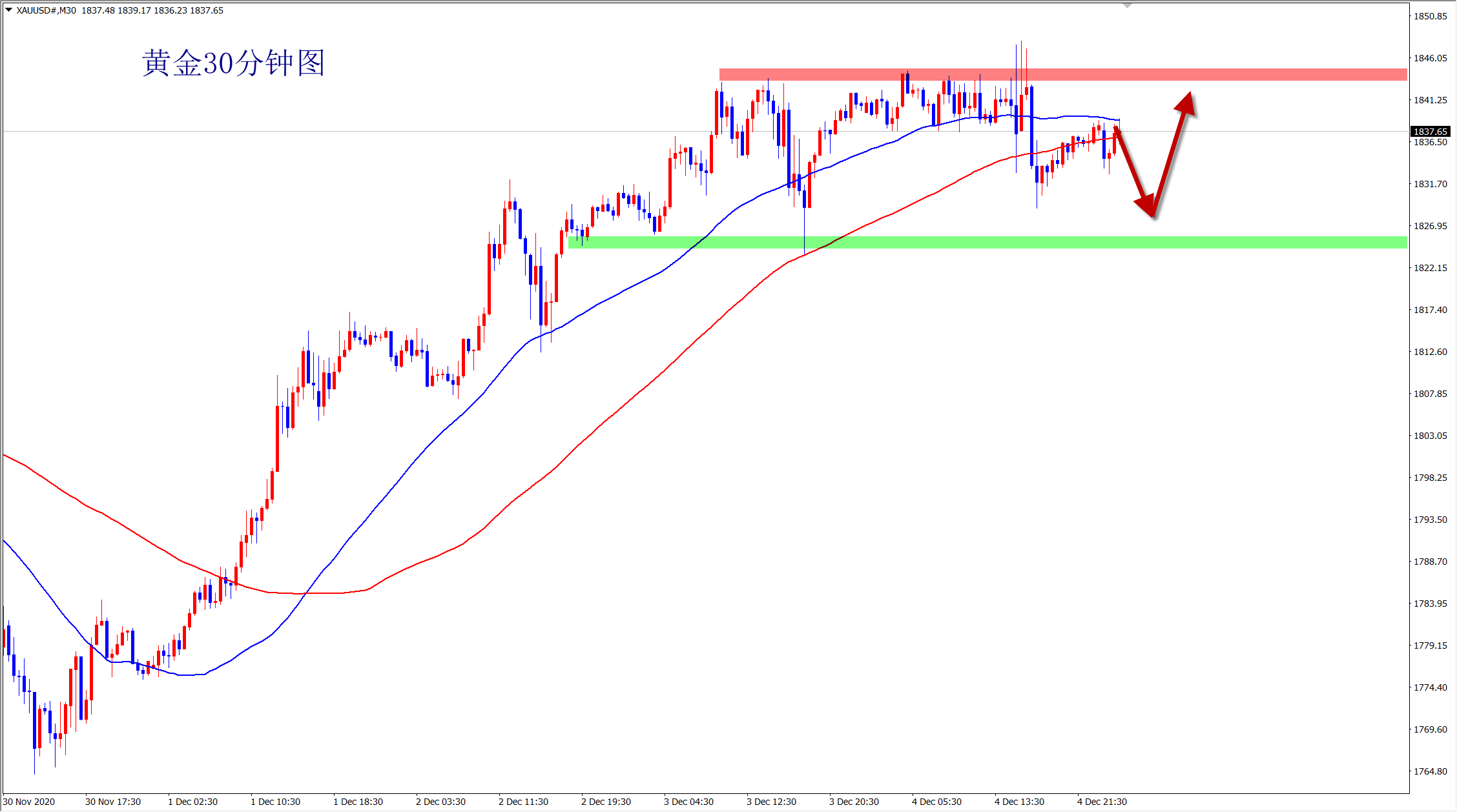 欧盘黄金1844下继续看跌不变,防守1848高点,下方支撑是1830和1820区域!