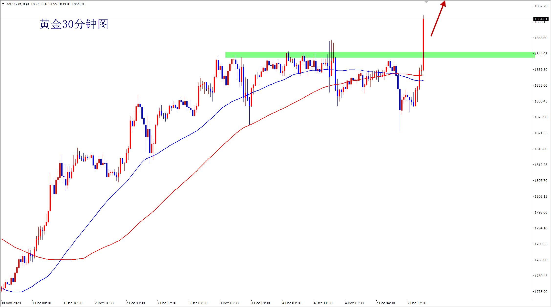 黄金多头将会继续上攻1880区域,多头不止步,顺势跟进即可!