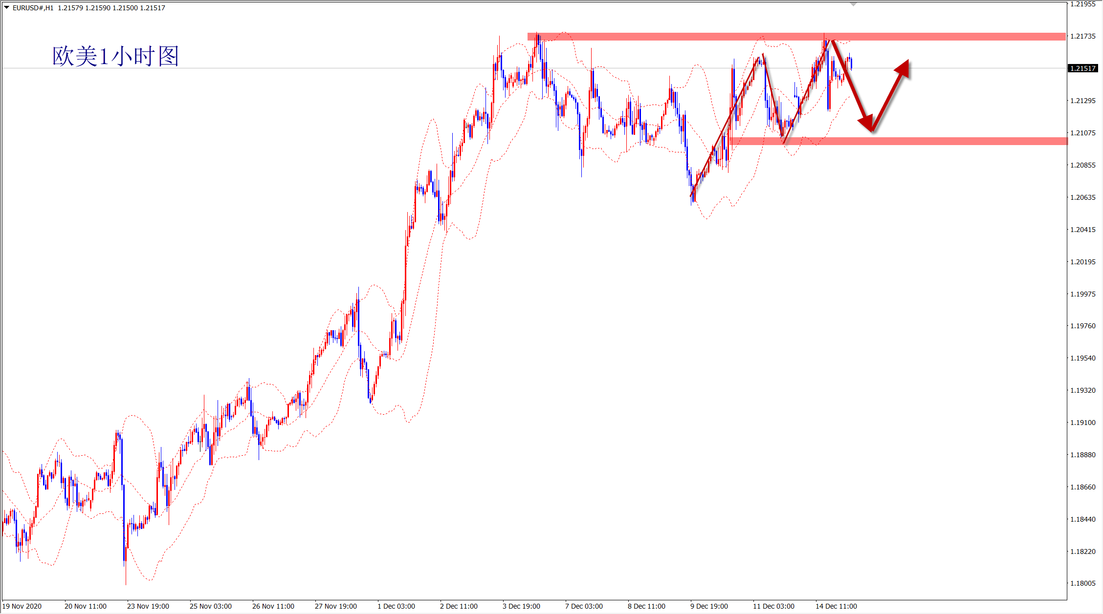 欧美此前日线上一直维持强势上涨走势,单边拉升,但是现在已经触及前期周线高点盘整压力区域,而且1小时走势上欧美也是在1.217位置承压后开启震荡,不排除行情震荡后继续上涨的可能,但是短线调整已经不可避免!