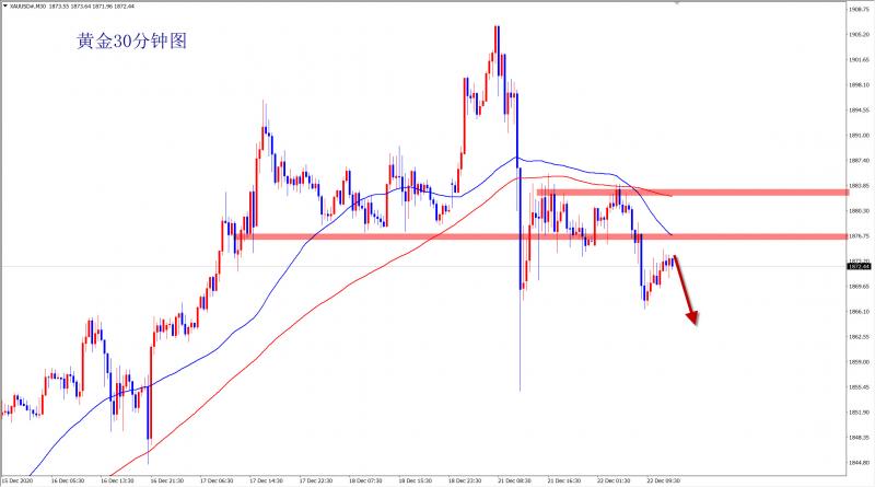 黄金美盘还是继续看跌不变,1882压力位置下,反弹就是继续干空,在1875附近空单直接进场,接下来看昨日回踩低点甚至是破位下跌的可能!