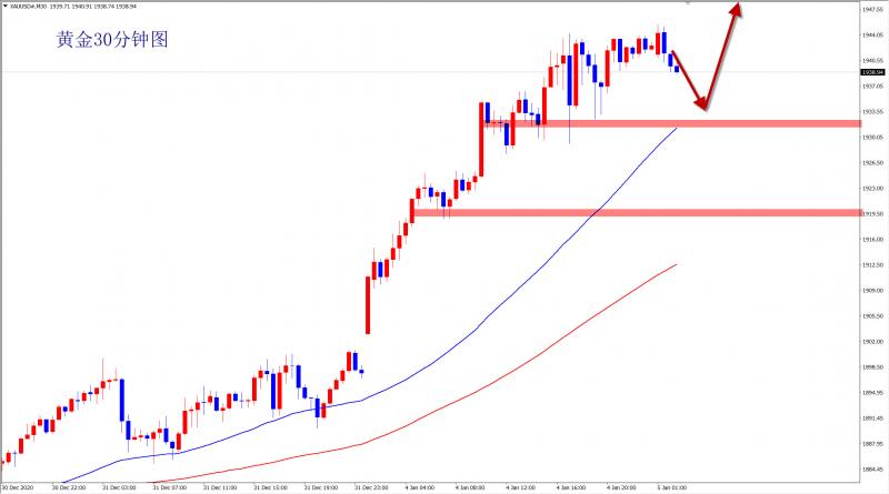 黄金1935多,止损1928,目标1950-1960;