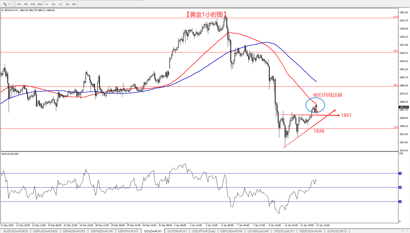欧盘依托1850的支撑,回落就是直接干多,上方关注1865位置压力,突破后看涨至1880一线!