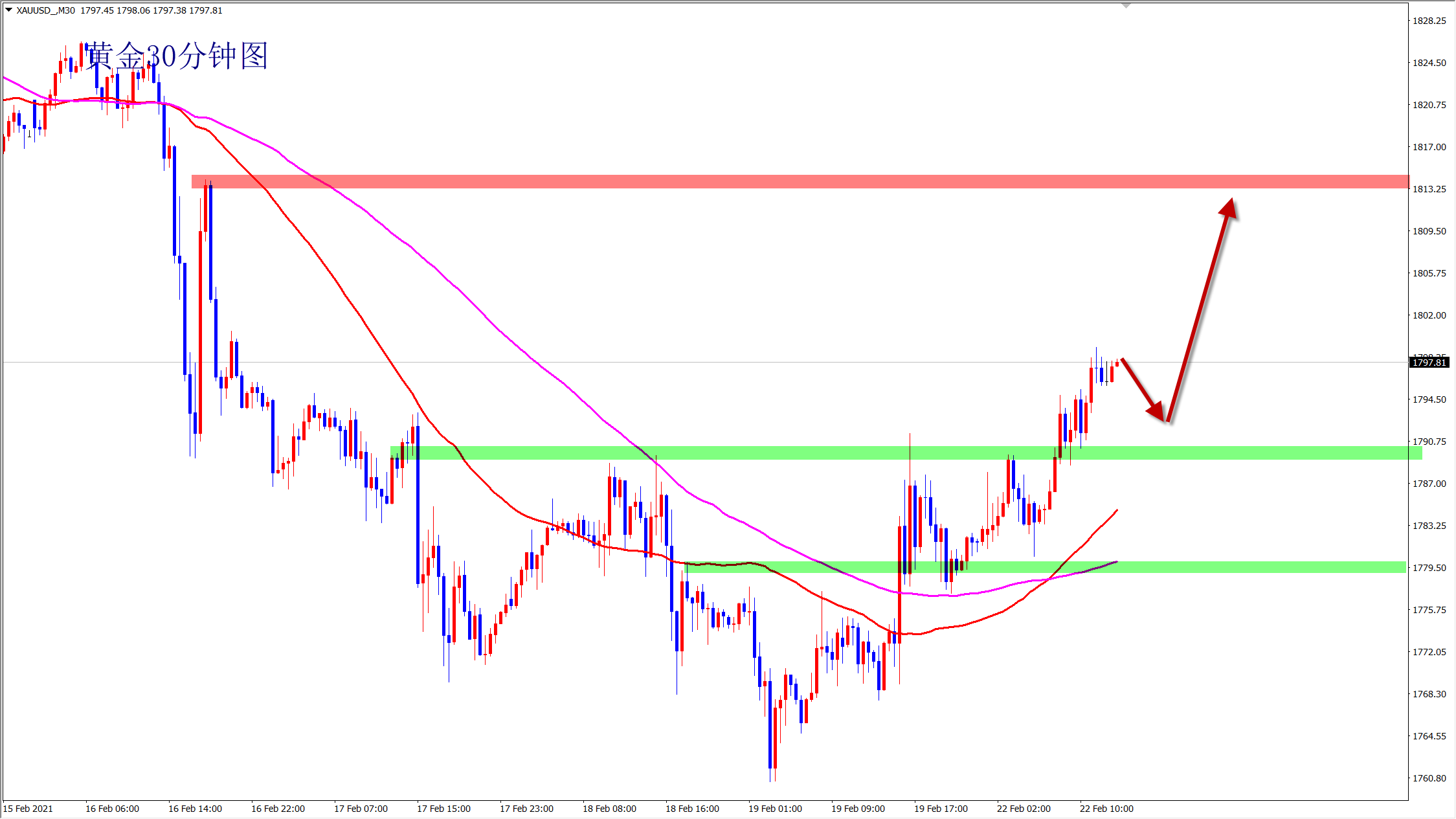 美盘1780为防守继续干多,在1790附近直接多!上看1810一线!