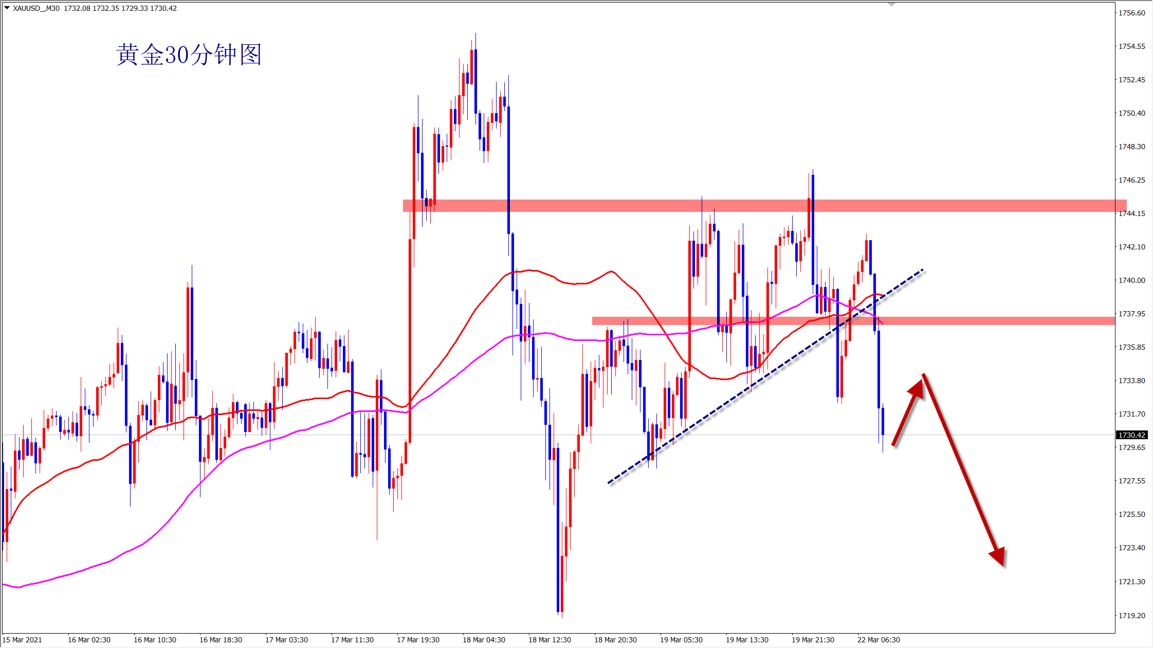 黄金1740空,止损1748,目标1730-1720;