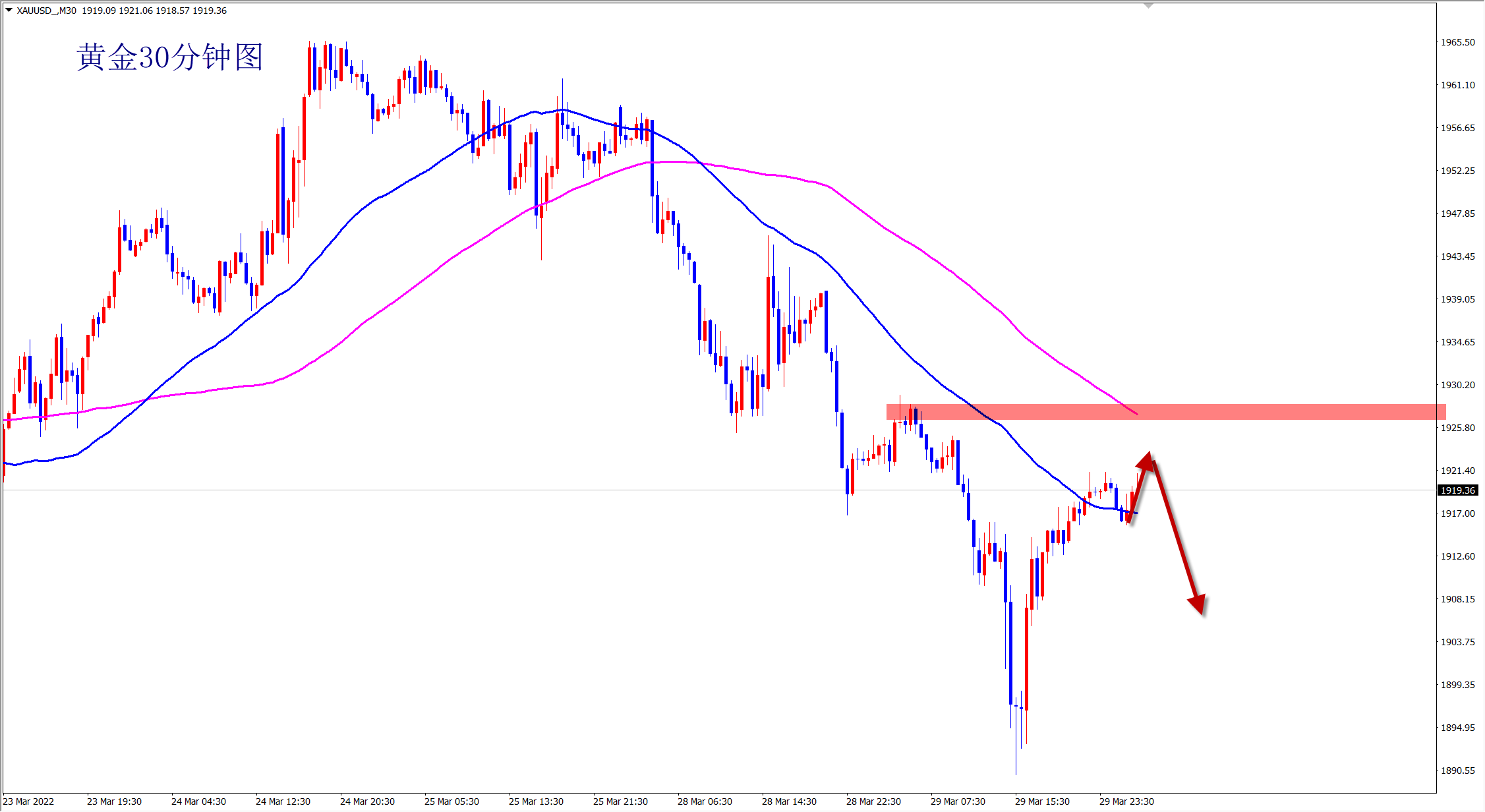 黄金1930空,止损1937,目标1910-1900;