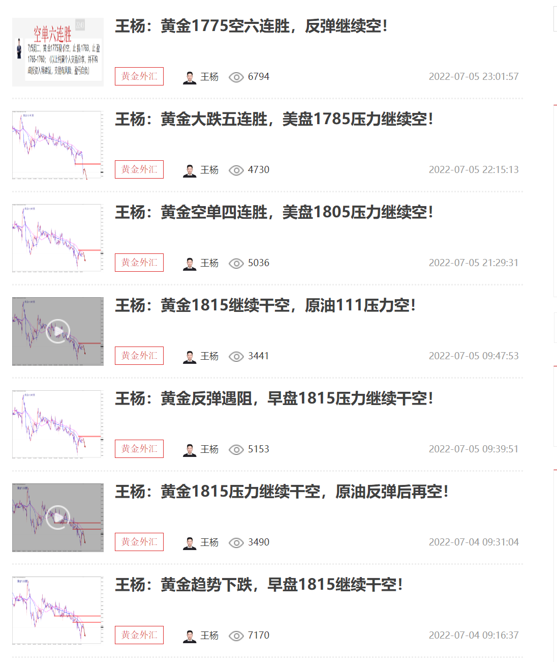 黄金昨日破位大跌,王杨分别在1810,1800,1797和1775位置干空,大跌获利收割,周一分别在1810和1807位置干空,本周已经六连胜到手!顺势轻飘飘,逆势乱糟糟,黄金跌势继续,反弹仍是继续空!