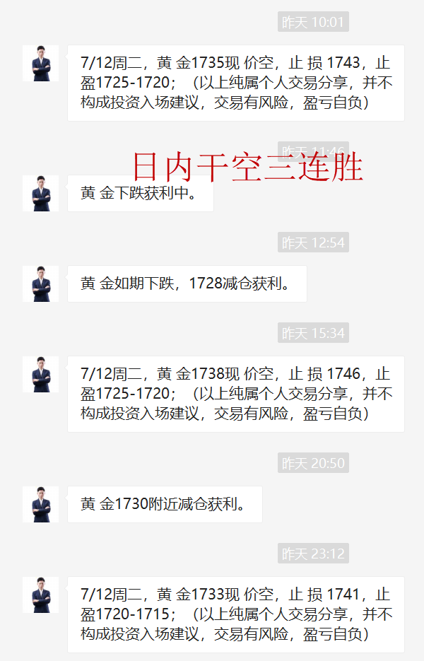 黄金依旧是空头跌势,昨日我们分别在1735干空,1738干空和1733干空,如期下跌获利收割!继上周干空最高12连胜后,本周再次拿下四连胜!顺势轻飘飘,逆势乱糟糟,每一波趋势,王杨都是紧紧跟随并大幅获利!
