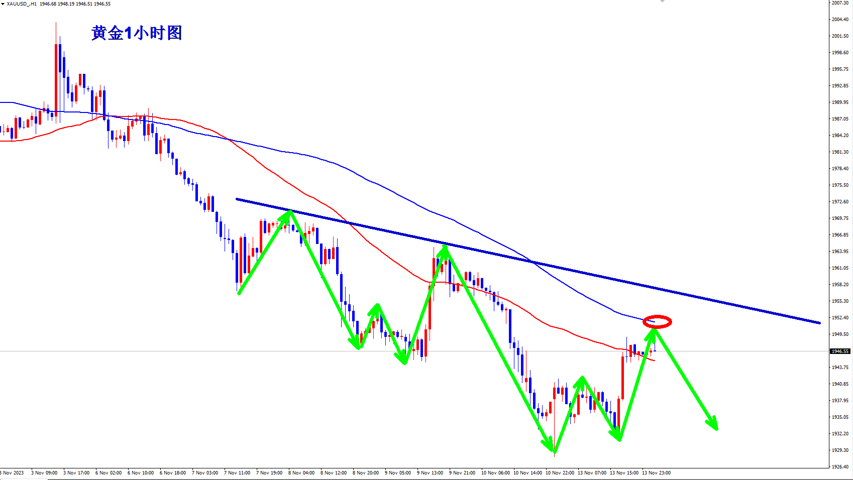 黄金深夜强势反弹,黄金开始反转了?还不一定,现在的反弹力度还不足以使黄金就此反转,黄金早盘现价1949直接先空。