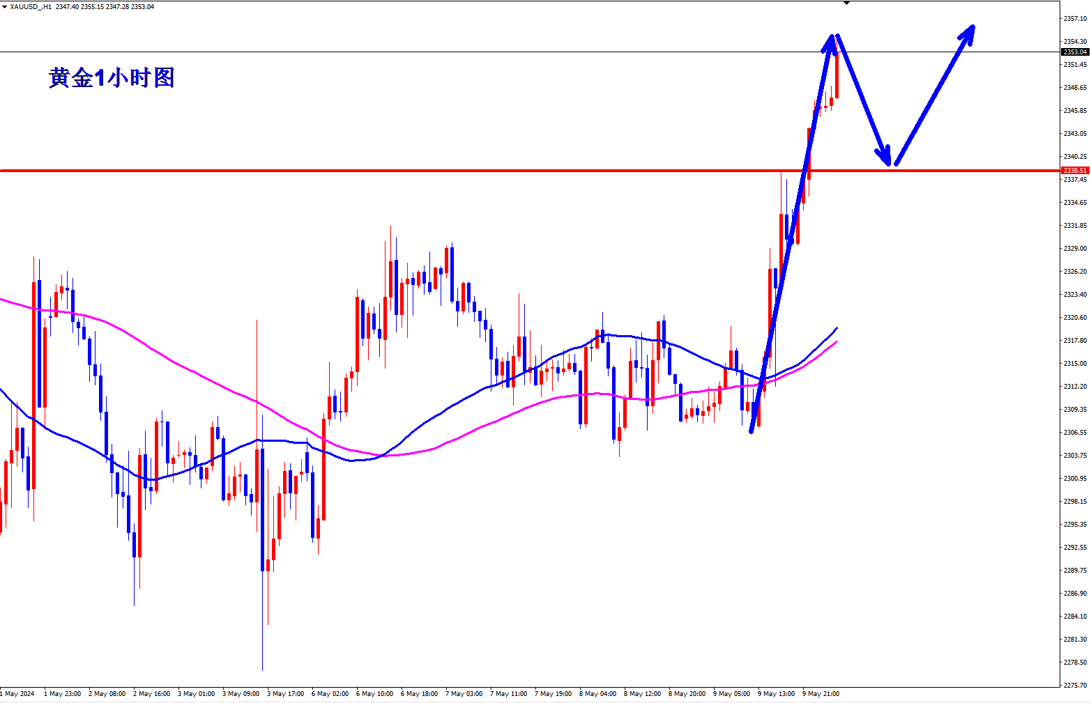 黄金大阳突破,趋势转多,黄金回踩昨日美盘高点2338支撑跟进做多,黄金多头回归,早盘回踩顺势做多了,回踩2338支撑上就是给干多的机会。