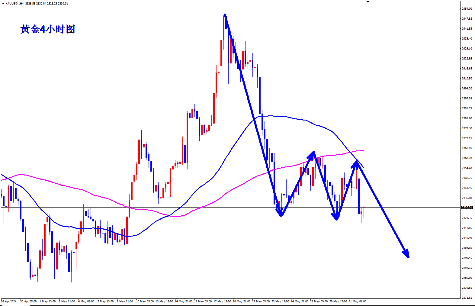 黄金上周五直接再次跌破新低,黄金空头趋势还将继续,远远还没有结束,黄金早盘现价2331直接空!