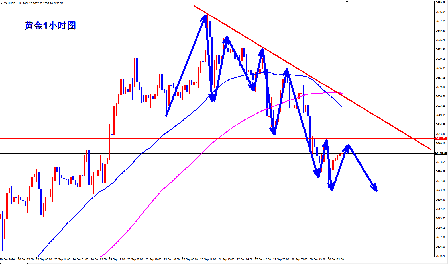 黄金2637空,止损2645,目标2620-2615;