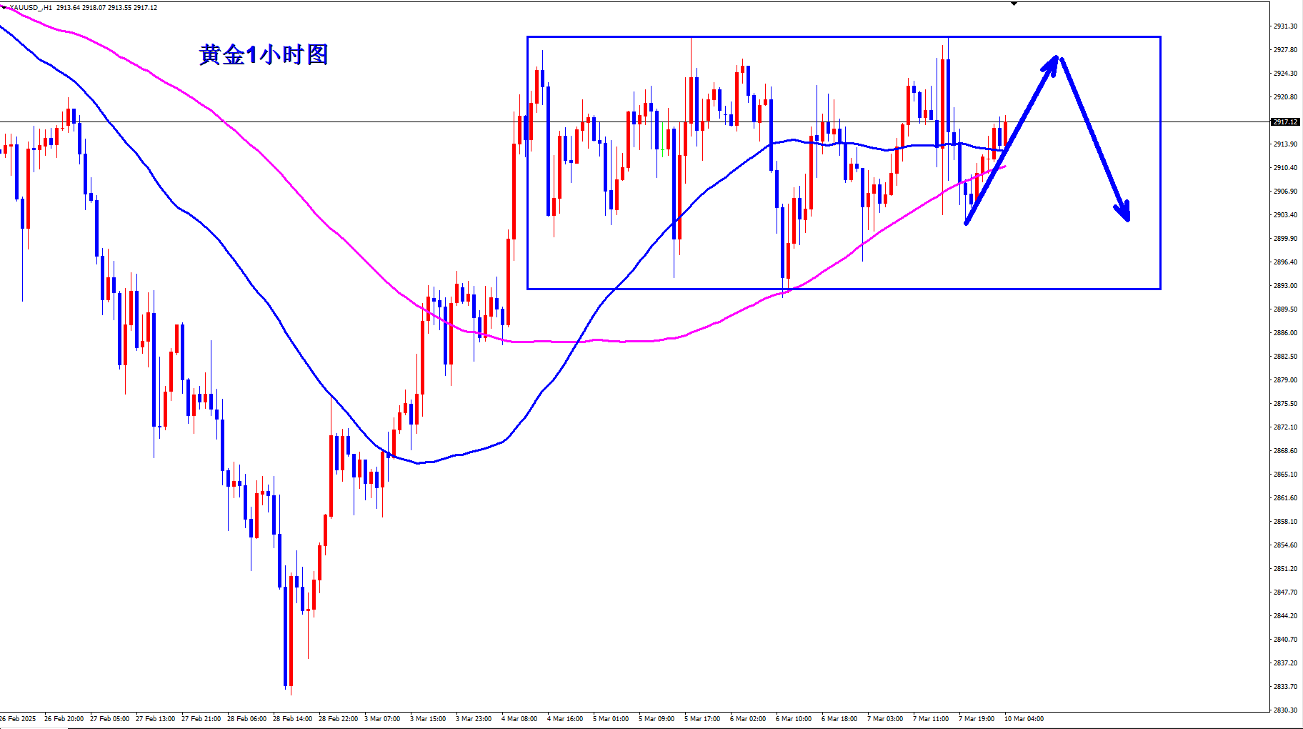 黄金1小时均线开始拐头,那么黄金多头暂时力度不足,黄金震荡高位就还是继续找高点空,黄金周五冲高2930附近还是承压回落,那么黄金早盘反弹2930下还是继续逢高空。黄金最近的行情就是冲高之后就快速回落,没有形成有效突破就不要追涨。