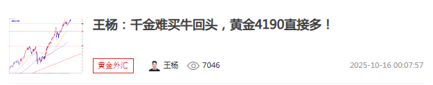 王杨:黄金隔夜4190直接多醒来就是收割,黄金又创新高!