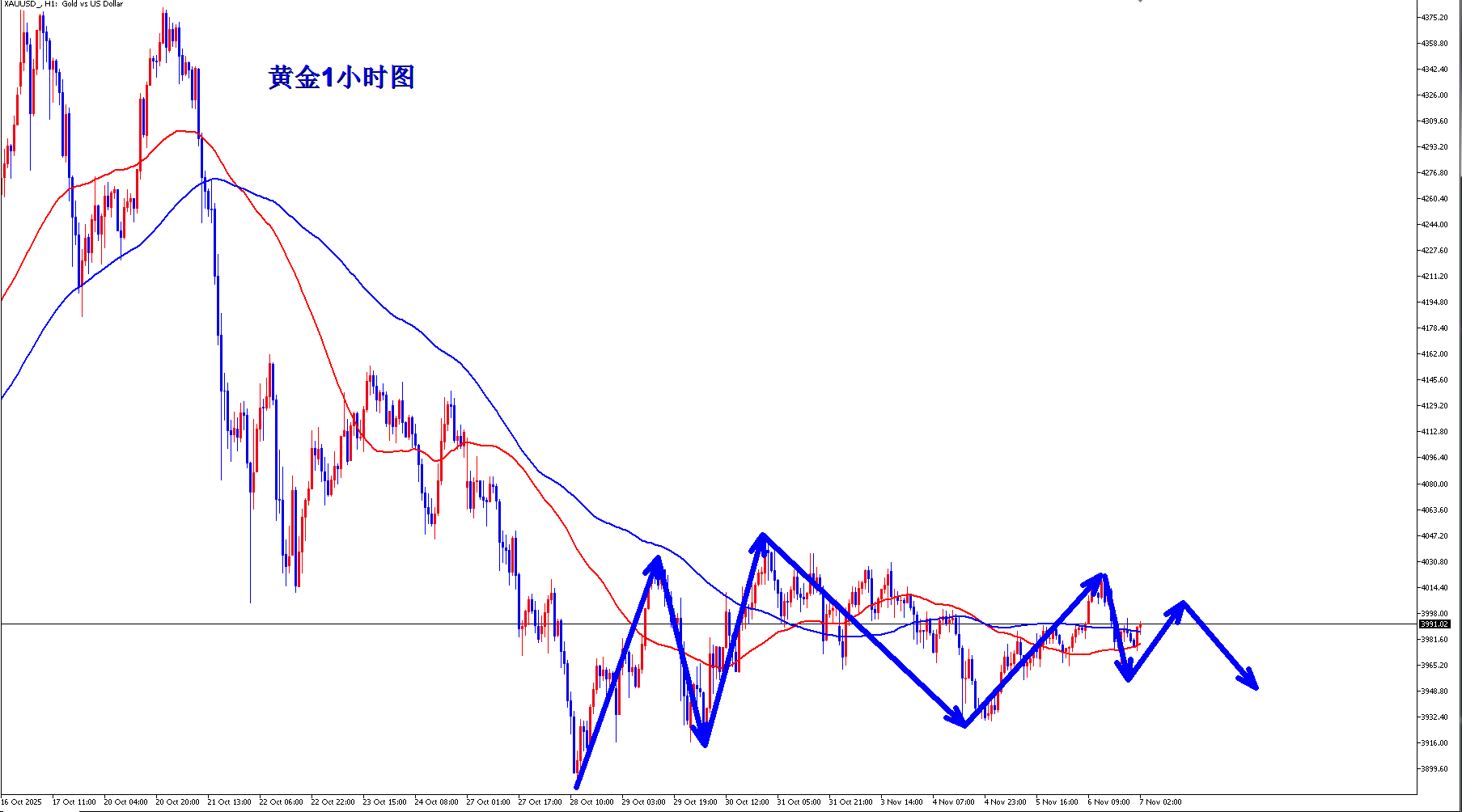 黄金1小时依然高是大区间内震荡,黄金昨天收长上影线,今天黄金反弹还是有一定的高位压制,黄金早盘反弹还是主要高空为主,黄金昨天多次承压4020一线压制下跌,黄金今天早盘4020下还是继续逢高空。
