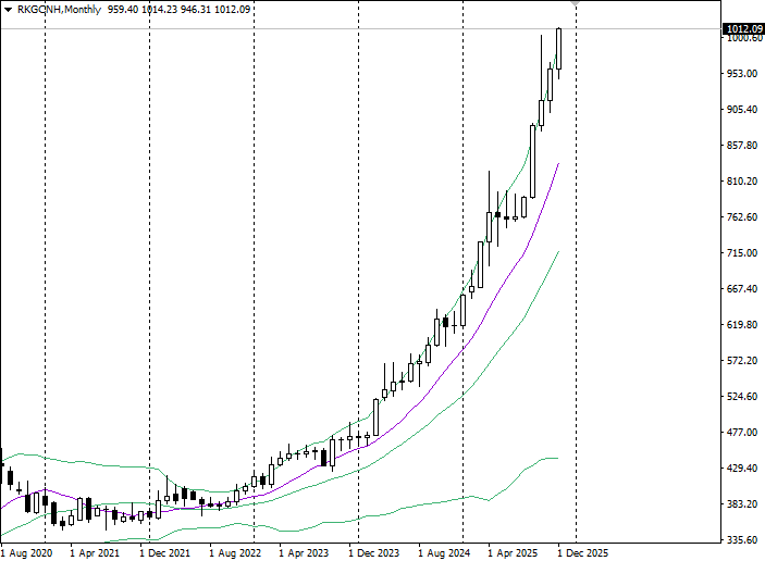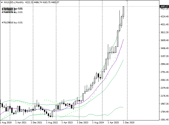 我今天统计了一下黄金从2003年到2025年,这22年黄金的月线收阳连涨。黄金月线收4连阳,有6次记录。黄金月线收5连阳,仅2次记录。没有月线收6连阳的记录。上一次月线收5连阳发生在2010年8月至2010年12月,黄金从1174美元/盎司,涨至1430美元/盎司,黄金涨幅21%。第二次月线5连阳发生在15年后,也就是2025年,同样是从8月份开始,黄金从3281美元/盎司(国内金价757元/克)开始涨,目前黄金的价格是4486美元/盎司(国内金价1013元/克),目前黄金月线5连阳涨幅接近37%。假如2026年黄金还能收月线,那么黄金将刷新月线5连阳记录,月线连阳6个月。从月线收阳概率来讲,黄金月线有回调需求,只是黄金先涨到哪里回调。