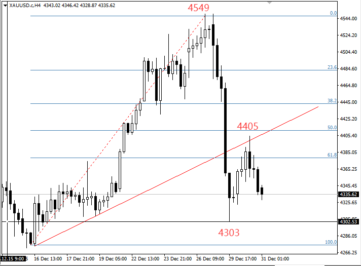 黄金在4小时周期走势中完成了一轮剧烈的多空切换,价格触及4550美元/盎司(国内黄金1025元/克)的阶段高点后,快速下挫247美金至4303美元/盎司,随后反弹至4405美元/盎司(国内黄金989元/克),当前回落至4335美元/盎司,整体呈现高位震荡偏空的格局。