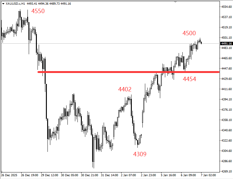 重点来了!4454这个位置是关键,只要黄金能稳稳站在这个位置上方,后续大概率还能往上冲,先看4513这个位置,突破了就接着看4544,离历史高点就一步之遥了。
