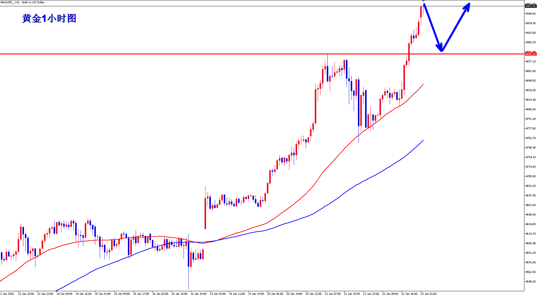 黄金1小时均线继续金叉向上的多头排列,黄金多哦图上涨力度十足,黄金突破高点4888一线之后,黄金多头持续发力,黄金短线已经形成在4890附近形成支撑,不过急涨之后先不要追,耐心等待回落继续多,黄金早盘回踩4890附近逢低多。