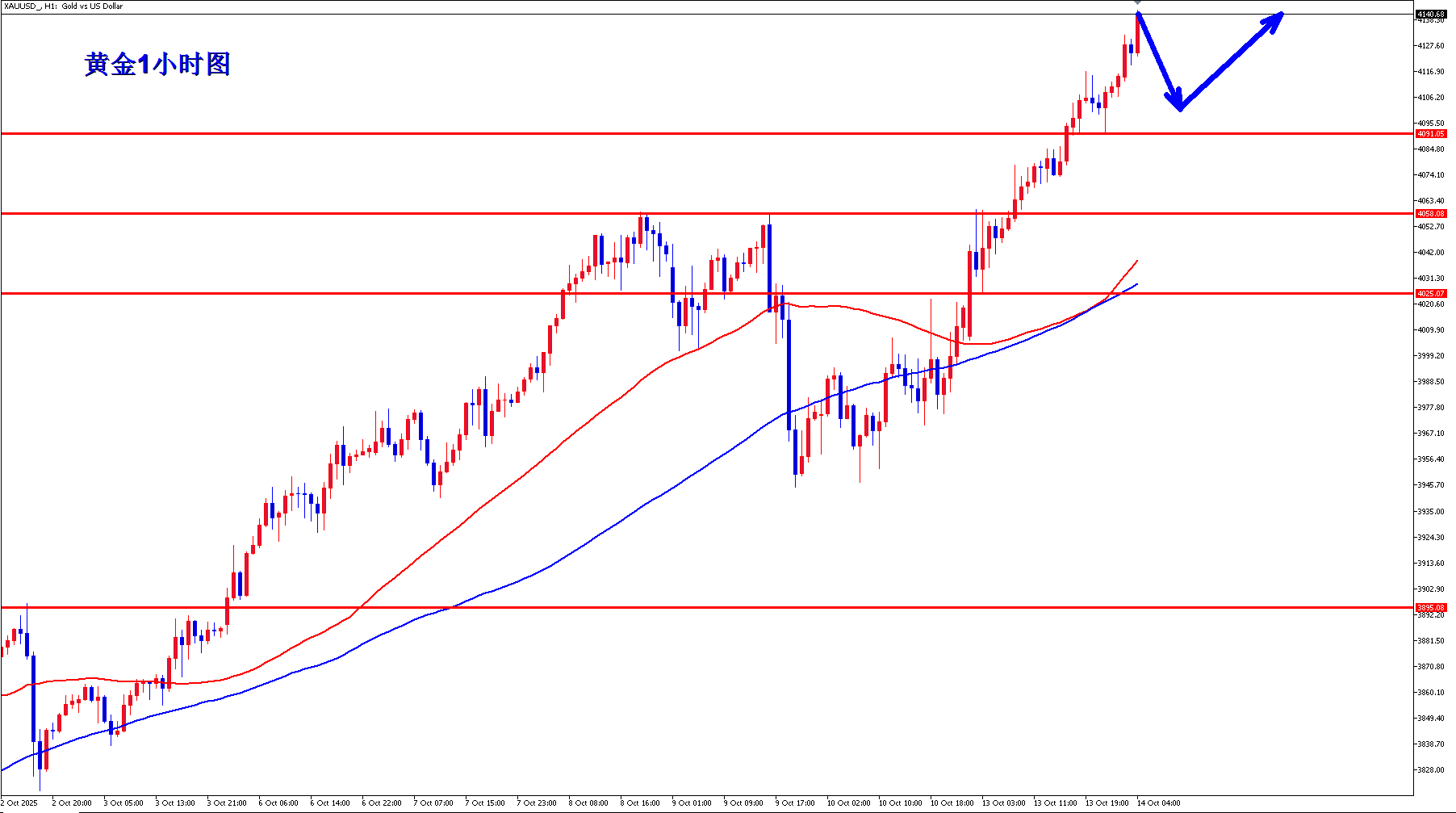 黄金现在还是多头趋势,黄金大牛市远远没有结束,黄金多头气势如虹,势不可挡,现在每天醒来黄金就是新高,黄金早盘回落继续多。 黄金1小时均线继续金叉向上进行多头发散,黄金多头力度仍在,黄金如期突破4100,之后,黄金早晚短线回踩4092附近之后继续上涨,黄金早盘回踩4100附近之后可以继续逢低多,黄金现在