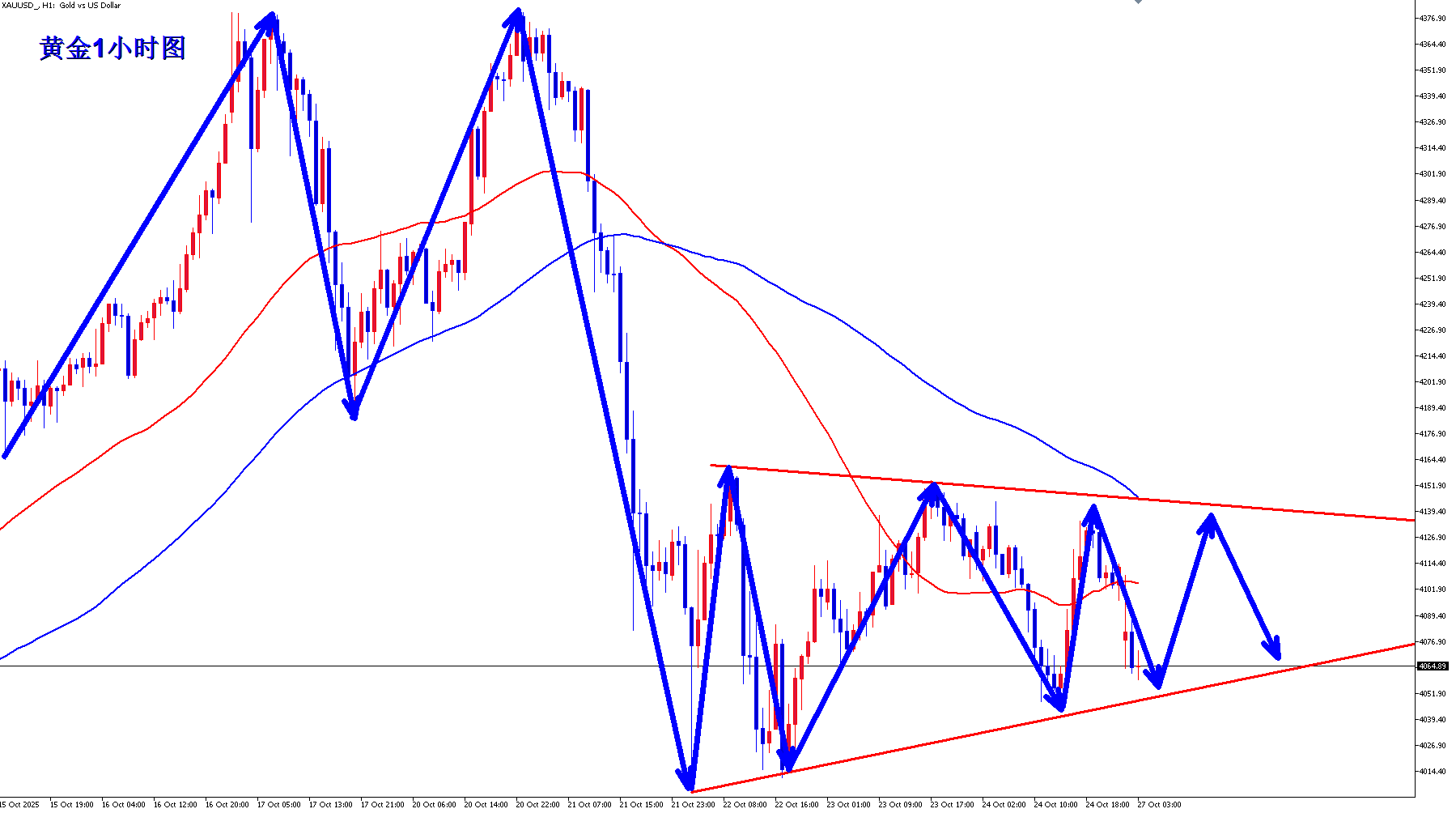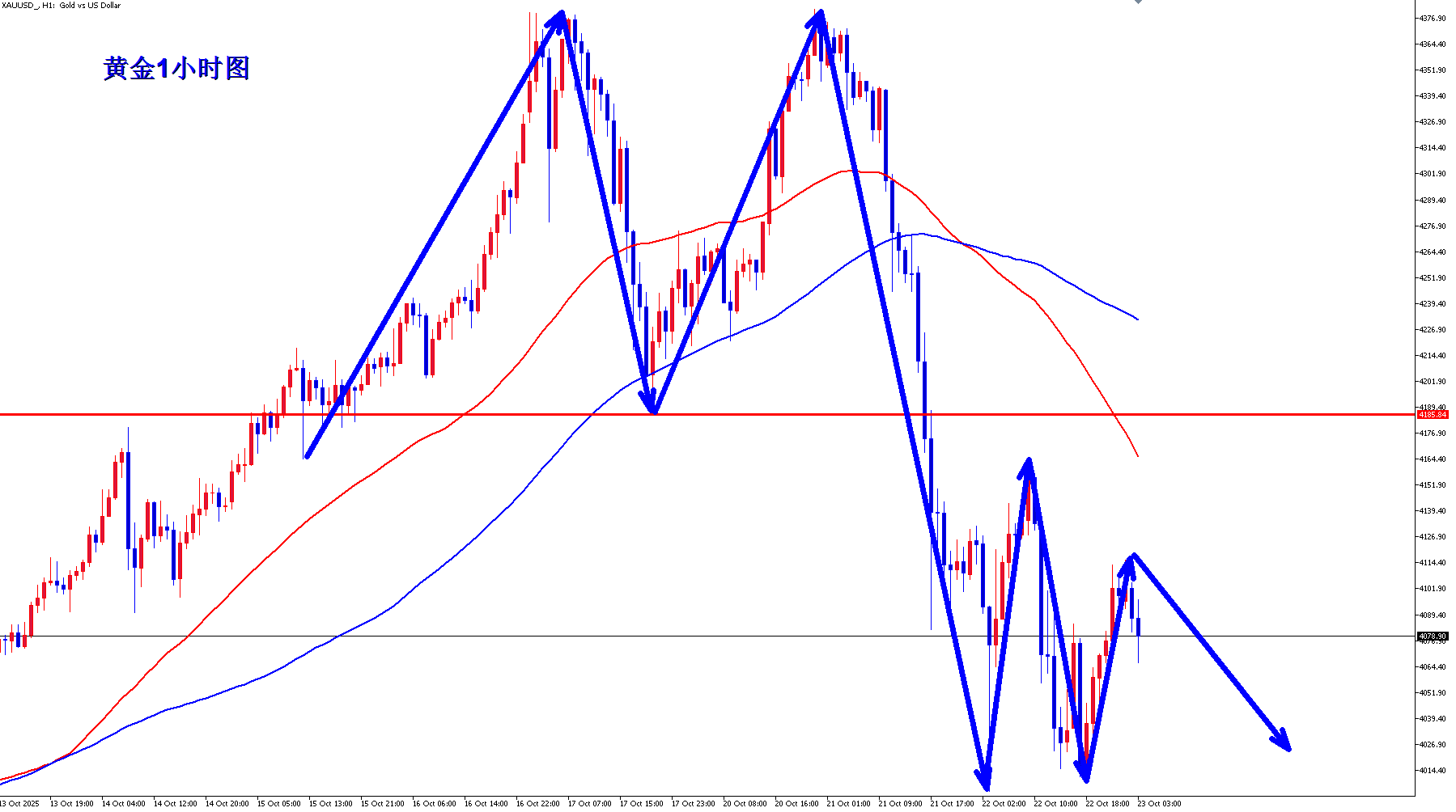 黄金空头现在开始不断发力,基本上黄金多头现在没有什么还手之力,反弹没有什么力度,现在还是继续是黄金空头的主场,早盘反弹继续空。 黄金1小时均线继续死叉向下的空头排列,黄金下跌还有动能,黄金跌破4000之后,短线反弹4010附近继续承压回落,黄金多头没有什么力度,黄金早盘反弹承压4010附近可以继续顺势