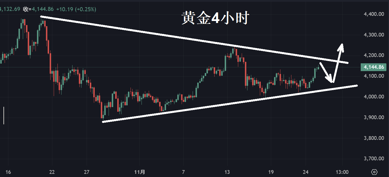 周四,金价小范围震荡,波动越来越小了,前段时间日内随便波动都是上百美金,随着多空博弈接近尾声,波动区间也在不断压缩。 不过,多空节奏没变,亚欧盘弱势震荡,美盘前后快速拉升,尾盘不延续,这就给多空给了同样的机会,单边行情讲究的是勇气,震荡行情看重的是位置,4180-4220美元之间洗盘,再等12月美联