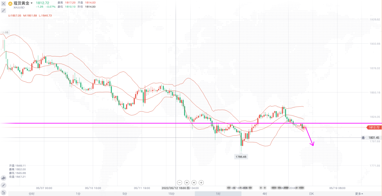 黄金方面,虽然美元的回调给黄金价格反弹提供了机会,但美联储激进加息的预期仍令多头有所顾忌,再加上全球股市反弹,打压了黄金的避险需求,价格短线偏向低位震荡运行,若要更大的反弹空间,还需要俄乌地缘局势等利多消息的刺激。日线级别,布林带开口向下,昨日的反弹也未能打破原有的震荡下行趋势,价格依旧维持在下行趋势线之下,早间开盘价格小幅反弹后延续下跌趋势,日内整体走势震荡偏空。4小时,布林带开口向下,价格短暂突破中轨之后再度回到中轨下方,进而形成压制,短线操作思路继续看空,上方关注1816一线阻力。
