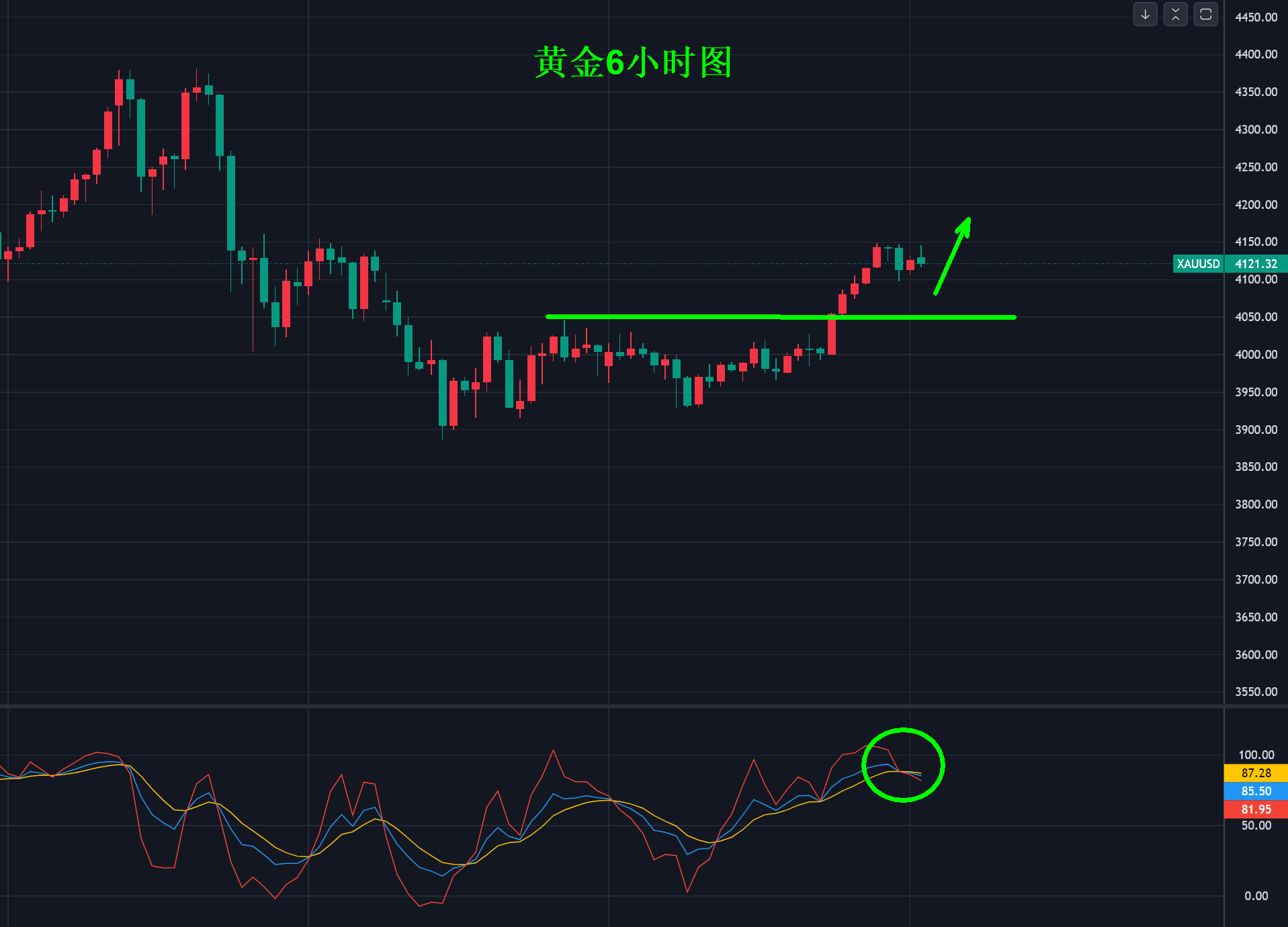 目前,金价止步于4120美元,两次反弹都没有突破此位置,而回调之后的强支撑在顶底转换4060-50美元,这里前期多次压制多头反弹,突破后形成顶底转换,也就是说有两个位置多,一个是金价再次站上4120美元回踩确认,另一个则是在顶底转换的位置4060-50美元。