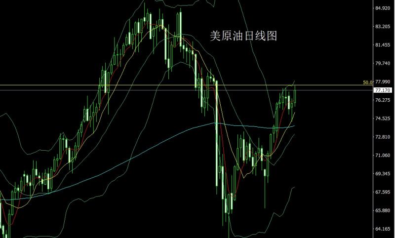 美原油:今日的行情76.5多止损76,目标看77.65和78-78.5.
