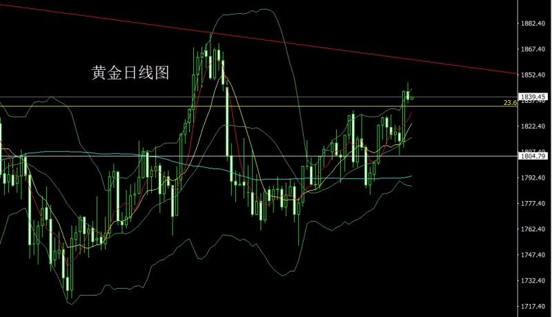 昨日黄金市场早盘开盘在1842.5的位置后行情先拉升发给出1844.2的位置后行情回落,日线最低给到了1835.7的位置后行情美盘时段受到利多因素拉升,日线最高触及到了1848的位置后行情回落,日线最终收线在了1837.9的位置后行情以一根上影线很长的中阳线收线,而这样的形态收尾后,今日的行情高空,点位上,今日的行情1843空保守1845空止损1849,下方目标看1835,跌破看1831和1824-1816.