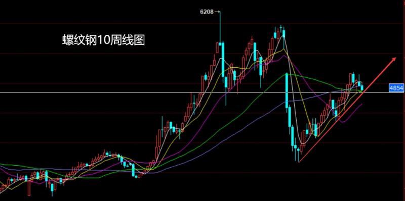 螺纹钢10合约上周开盘在5019的位置后行情先拉升给出5150的位置后行情快速回落,周线最低给到了4882的位置后行情整理,周线最终收线在了4888的位置后行情以一根上影线很长的大阴线收线,而这样的形态收尾后,本周4950空止损5000下方目标看4880,跌破看4830和4775.