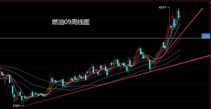 燃油09市场上周开盘在4213的位置后行情先拉升给出4292的位置后行情快速回落,周线最低给到了3948的位置后行情整理,周线最终收线在了4036的位置后行情以一根上影线稍长于下影线的大阴线收线,而这样的形态收尾后,本周4095空止损4135下方目标看4035,跌破看3950和3875.
