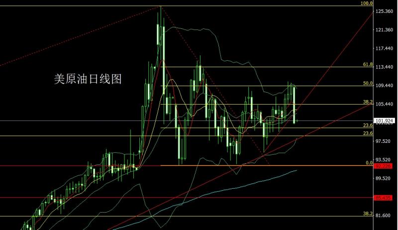 昨日美原油市场早盘低开在109.025的位置后行情小幅回踩109.368的位置后行情展开回落过程,日线最低给到了101.046的位置后行情整理,日线最终收线在了101.346的位置后行情以一根基本饱和的大阴线收线,而这样的形态收尾后,日线跌破趋势,今日的行情回踩空,点位上,今日的行情104空止损104.6下方目标看101和100-99.5.