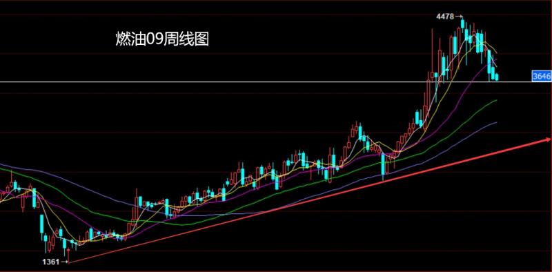 燃油09市场上周高开在3832的位置后行情回踩3746的位置后行情强势拉升,周线最高触及到了3989的位置后行情冲高回落,周线最低给到了3660的位置后行情整理,周线最终收线在了3670的位置后行情以一根上影线很长的大阴线收线,而这样的形态收尾后,本周3735空止损3780下方目标看3660,跌破看3575和3440。