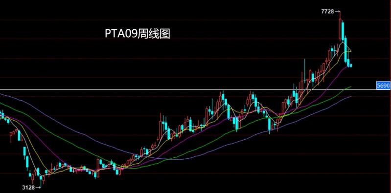 PTA09市场上周高开在在6484的位置后行情先回落给出6316的位置后行情强势拉升,周线最高触及到了6758的位置后行情快速回落,周线最低给到了6261的位置后行情整理,周线最终收线在了6298的位置后行情以一根上影线很长的倒锤头形态收线,而这样的形态收尾后,本周6445空止损6470下方目标看6261,跌破看6125和6035.