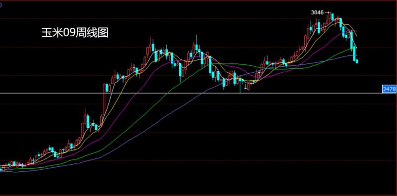 上周玉米09市场周初高开在2804的位置后行情先拉升给出2822的位置后行情展开回落,周线最低给到了2684的位置后行情整理,周线最终收线在了2688的位置后行情以一根上影线很长的大阴线收线,而这样的形态收尾后,本周回踩延续空,点位上,周初2750空止损2775,下方目标看2684,跌破看2635和2600-2575.