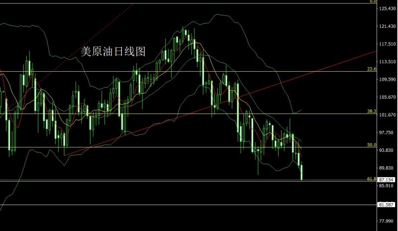 美原油市场昨日开盘在90.437的位置后行情小幅拉升给出91.294的位置后行情回落,日线最低给到了86.957的位置后行情整理日线最终收线在了87.154的位置后行情以一根上影线很长的大阴线收线,而这样的形态收尾后,今日的行情延续空,点位上,今日的行情88.5空止损89.下方目标看87.跌破看85和84支撑点。