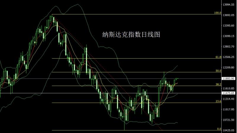 昨日纳斯达克市场小幅拉升,早盘开盘在11853.33的位置后行情小幅回踩11848.85的位置后行情小幅拉升,日线最高触及到了11909.97的位置后行情整理,日线最终收线在了11891.34的位置后行情以一根略带影线的小阳线收线,而这样的形态收尾后,今日的行情延续小幅区间拉升,点位上,今日11870多止损11845,目标看11910.破位看11950和11985.