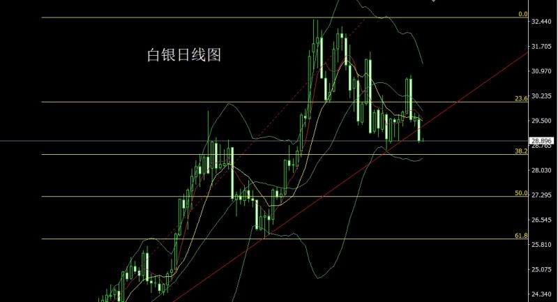白银市场昨日大幅回落,早盘开盘在29.534的位置后行情先回落给出29.232的位置后行情强势拉升,日线最高触及到了29.663的位置后行情美盘强势回落,日线最低给到了28.825的位置后行情整理,日线最终收线在了28.901的位置后行情以一根上影线较长的大阴线收线,而这样的形态收尾后,日线有效破位本轮上行趋势线,今日的行情回踩空,点位上,下方22.35和22.5的多以及24.45的多减仓后止损跟进在27持有,今日的行情29.15空止损29.35,下方目标看28.8,跌破看28.5和28.2.