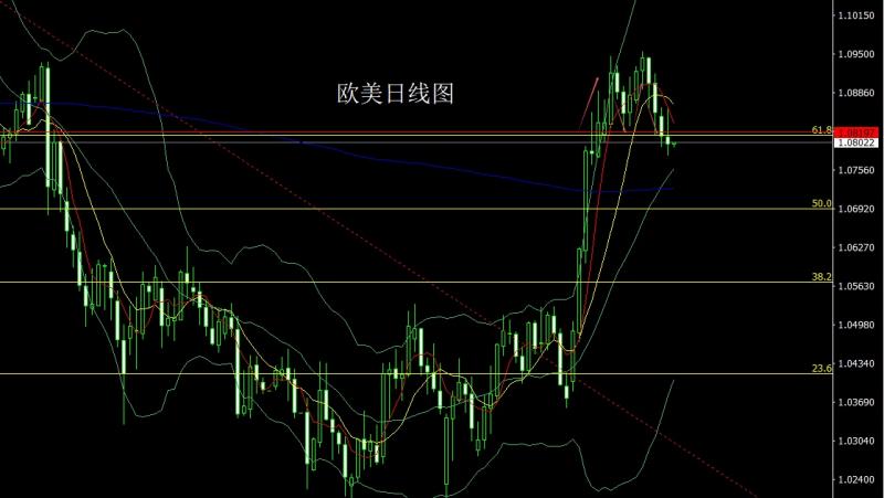 欧美市场昨日开盘在1.08125的位置后行情先拉升,日线最高触及到了1.08582的位置后行情强势回落,日线最低给到了1.07804的位置后行情整理,日线最终收线在了1.08005的位置后行情以一根上影线极长的倒锤头形态收线,而这样的形态收尾后,昨日1.08500的空减仓后止损跟进咋1.08600持有,今日1.08400空止损1.08600,目标看1.08000和1.07800,跌破看1.07500和1.07300-1.07100.