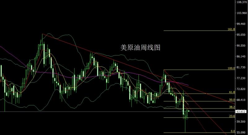 美原油市场上周小幅高开在61.74的位置后行情先回落,周线最低给到了60.27的位置后行情拉升,周线最高触及到了64.66的位置后行情整理,周线最终收线在了64.18的位置后行情以一根下影线较长额中阳线收线,而这样的形态收尾后,本周62.9多止损62.4,目标看63.7和64.2,破位看64.6和65.