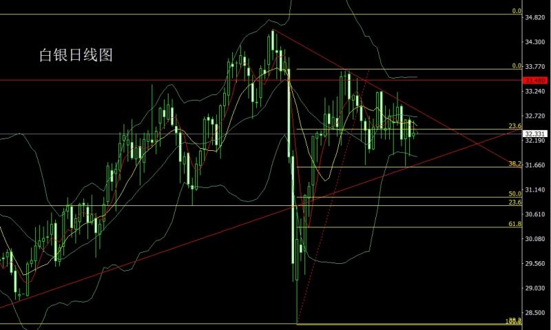 白银市场昨日开盘在32.287的位置后行情区间拉升,日线最高触及到了32.615的位置后行情冲高回落,日线最低给到了32.219的位置后行情整理,日线最终收线在了32.344的位置后行情以一根上影线很长的倒锤头形态收线,而这样的形态收尾后,今日32.55空止损32.75,目标看32.25和32-31.8.