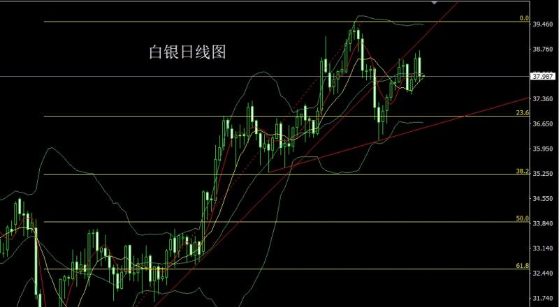 白银市场昨日开盘在38.525的位置后行情先拉升给出38.727的位置后行情强势震荡回落,日线最低给到了37.823的位置后行情整理,日线最终收线在了38.008的位置后,日线以一根上下影线等长的大阴线收线,而这样的形态收尾后,日线阴包阳,今日38.35空止损38.55下方目标看38和37.8,跌破看37.6和37.45.