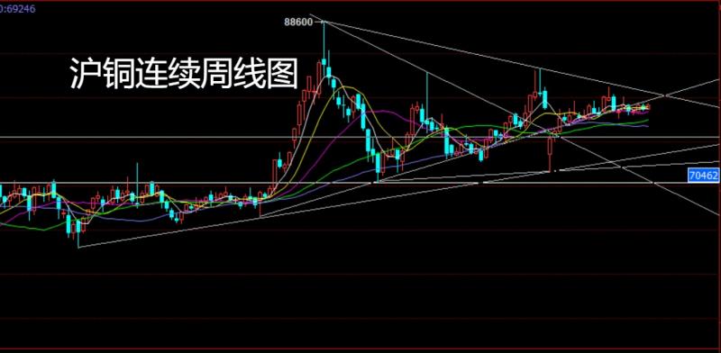 沪铜连续市场上周开盘在79087的位置后行情先拉升给出79317的位置后行情强势震荡回落,周线最低给到了78481的位置后行情强势震荡拉升,到周五周线最高触及到了79354的位置后行情整理,周线最终收线在了79110的位置后,周线以一根下影线很长的启明星形态收线,而这样的形态收尾后,本周78900多止损78700,目标看79300和79500和79850和80000.