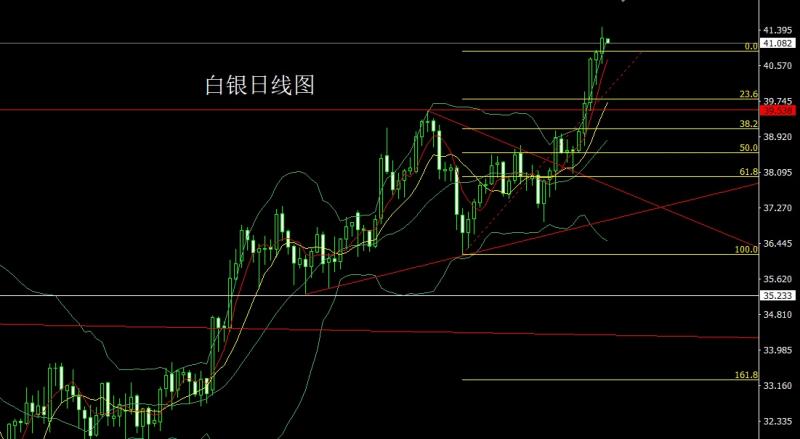 白银市场昨日开盘在40.845的位置后行情先回落,日线最低给到了40.608的位置后行情震荡拉升,日线最高触及到了41.466的位置后行情整理,日线最终收线在了41.202的位置后,日线以一根上下影线等长的中阳线收线,而这样的形态收尾后,下方37.8的多和上周五38.8的多减仓后止损跟进在39.5持有,前日40.3的多减仓后止损跟进在40.4,今日40.8多止损40.6,目标看41.2和41.5,破位的话看41.8和42-42.3.