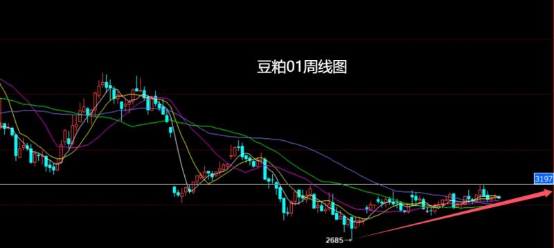 豆粕01市场上周开盘在3071的位置后行情先拉升给出3095的位置后行情强势回落,周线最低给到了3055的位置后行情强势拉升,周线最高触及到了3099的位置后行情整理,周线最终收线在了3066的位置后行情以一根上影线稍长于下影线的十字星形态收尾,而这样的形态收尾后,本周3080空止损3095,下方目标看3055,跌破按3030和3010.