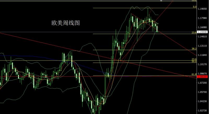 欧美市场上周开盘在1.16314的位置后行情先拉升给出1.16688的位置后行情强势震荡回落,周线最低给到了1.15196的位置后整理,周线最终收线在了1.15353的位置后。周线以一根上影线很长的大阴线收线,而这样的形态收尾后,本周回踩延续空,点位上,上周1.16300的空减仓后止损跟进在1.16200,,今日1.15600空,止损1.16800,下方目标看1.15200和1.14900和1.14600和1.14500.