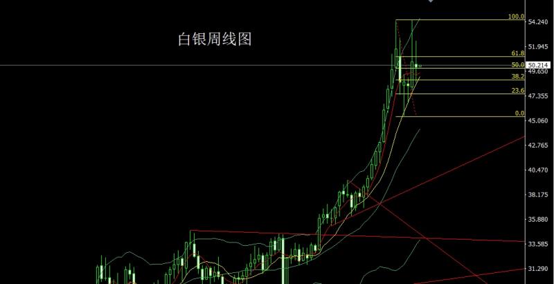 白银市场上周低开在50.323的位置后行情小幅回踩给出49.17的位置后行情强势拉升,周线最高触及到了52.476的位置后行情受到基本面压力强势回落,周线最低给到了48.577的位置后尾盘拉升,周线最终收线在了50.018的位置后周线以一根上影线长于下影线的长脚十字星形态收线,而这样的形态收尾后,下方37.8的多和38.8的多跟进在42持有,早盘先拉升50.7空止损50.9,目标看50.3和50,跌破看49.6和49.3离场准备多。