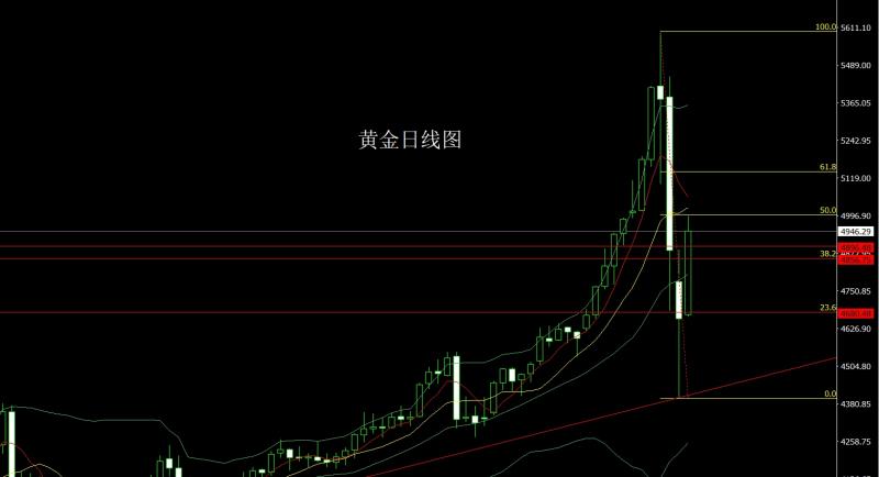 昨日黄金市场延续拉升趋势,早盘开盘在4673.4的位置后行情先回落给出4663.7的位置后行情强势震荡拉升,日线最高触及到了4995.1的位置后整理,日线最终收线在了4946.3的位置后,日线以一根上影线较长的大阳线收线,而这样的形态收尾后,今日的行情回踩延续多,点位上,前日4400的多减仓后止损上移放到4500,今日如果先回落4830多保守4825多止损4819,目标看4900和4950和5000关口, 破位的话看5035和5050和5082.