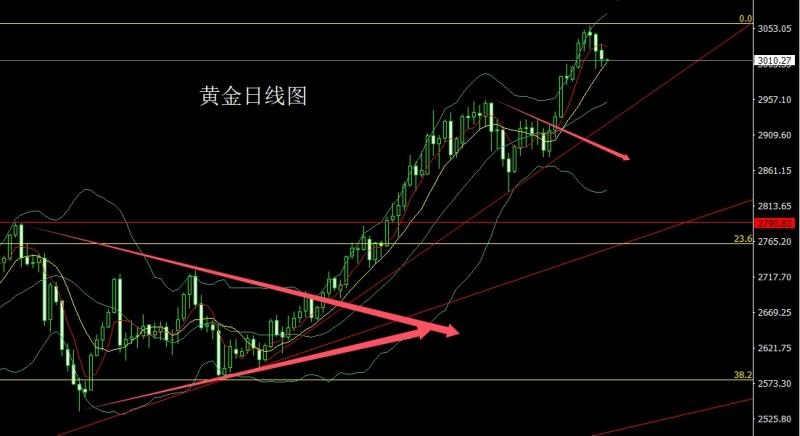 昨日黄金市场延续拉升,早盘开盘在3001.4的位置后行情回踩2999的位置后行情强势震荡拉升,日线最高触及到了2038.4的位置后行情高位盘整,日线最终收线在了3034的位置后行情以一根略带影线的大阳线收线,而这样的形态收尾后,今日的行情延续多,点位上,上周2940和2958的破位多减仓后,止损跟进在2975持有,昨日3004的多
