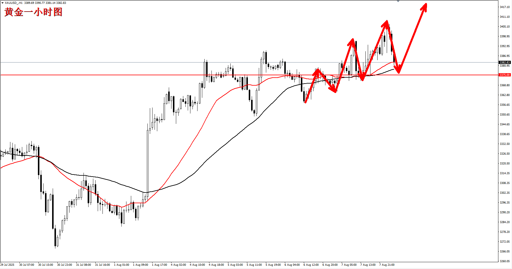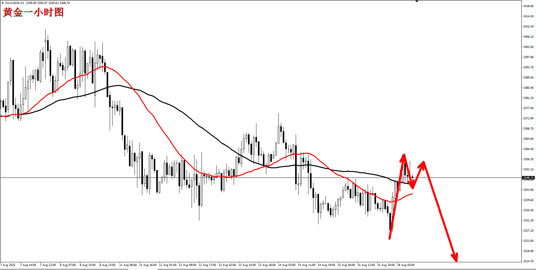 日内金价一直走反弹,但午后高点触及3315以后一小时图开始收阴线,这也是短期见顶的信号之一,并且可以看到金价反弹的能量开始减弱,在3333下方见顶其实就是我们放空的机会,午后我们可以参考3310-3315这个区间顺势跟空,下方目标在昨晚的低点3268下方!